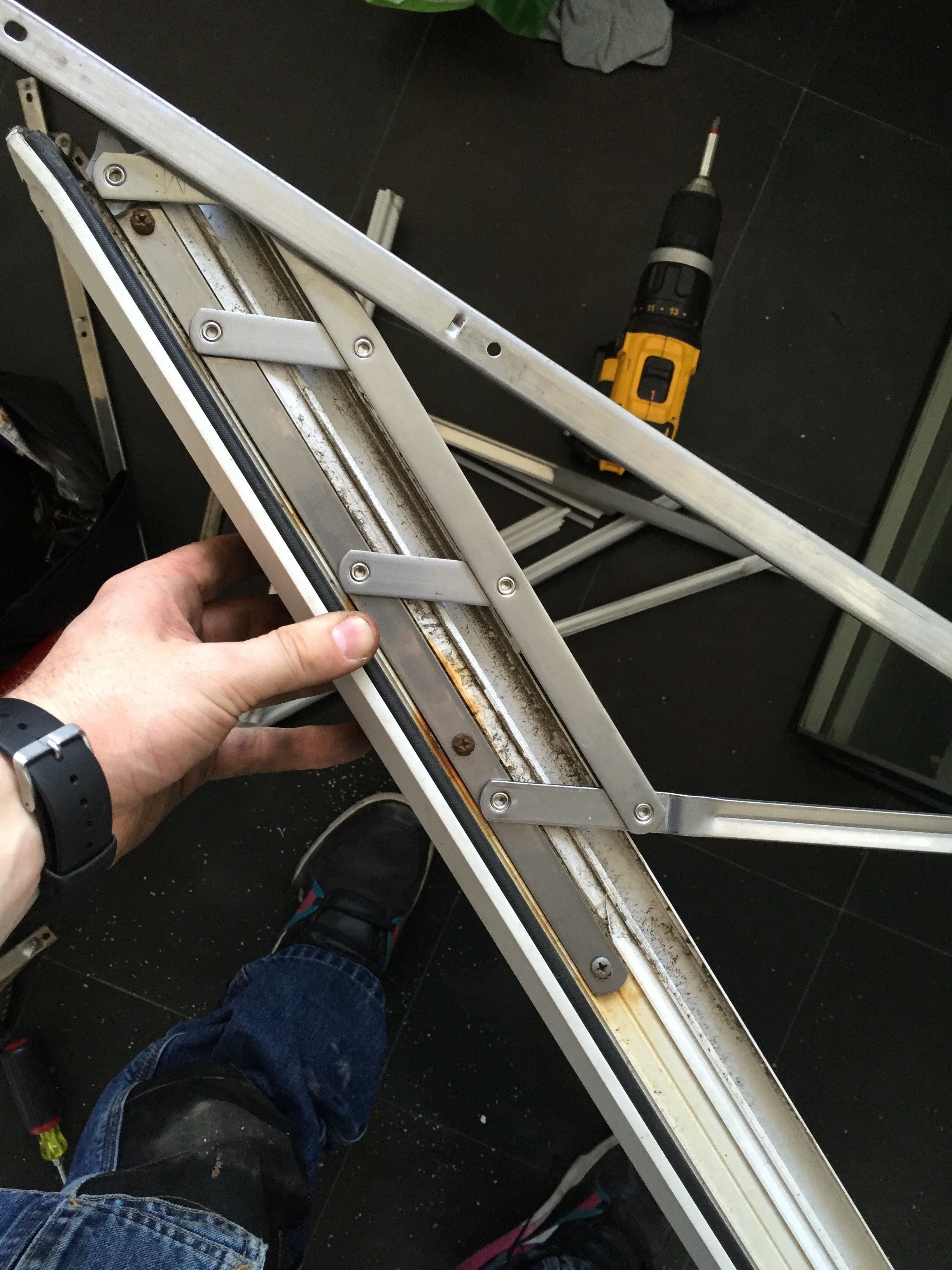 This window unit needed its hinges replacing after they had become bent and would not allow the window to open or fully close leaving a gap around the edge of the window. The tricky part is removing the window when it doesn’t want to leave its home.