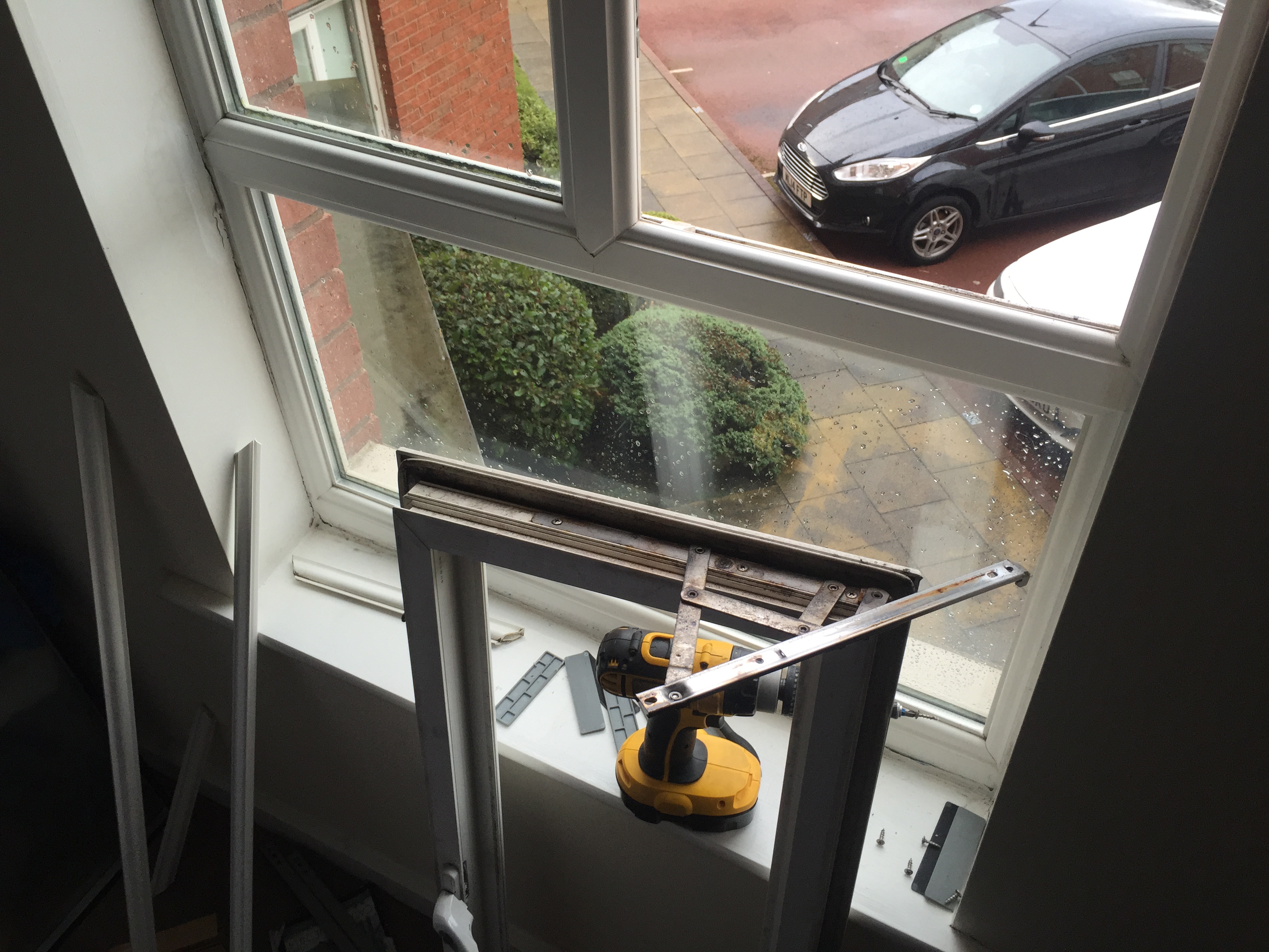 This Job involved removing the Upvc window in question to replace its hinges as they had been caught by the wind and had bent.